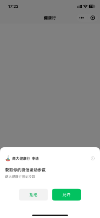 登陆后,“商大健康行”会提示申请获取你的微信运动步数,选择允许,即完成绑定。