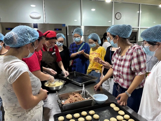 “小饼如嚼月,中有酥与饴。”值此中秋佳节将至之际,在校工会和后勤服务中心的大力支持下,教职工手工协会于9月28日中午在流水苑食堂举办制作手作榨菜鲜肉月饼活动。三十位教职工暂别案牍,以酥皮为笺、肉馅为墨,共绘团圆画卷。