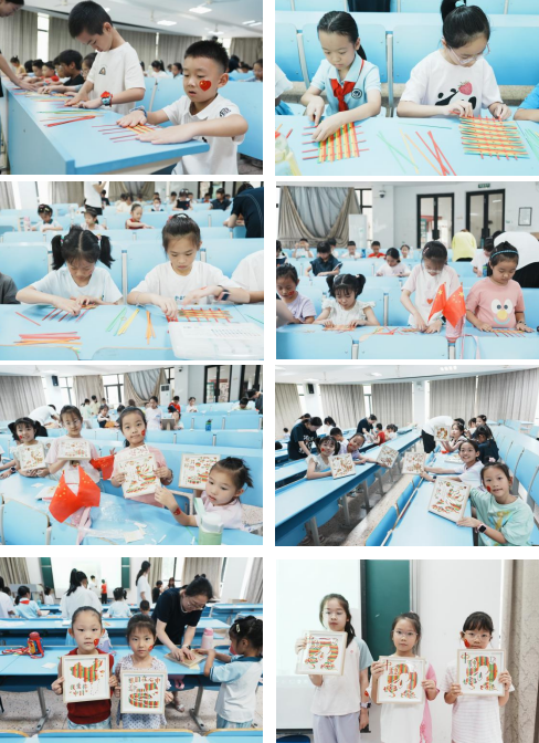 “大家看,这个竹编摆台可以拼出‘中秋快乐’的字样,也能组合成小国旗的图案哦!” 在 “童心守非遗 小手传匠心” 主题环节,浙江工商大学手工协会的叶老师手持竹编材料,耐心讲解制作技巧。桌面上,彩色竹条、固定底座、装饰配件整齐摆放,孩子们小心翼翼地拿起竹条,按照叶老师的指导对折、穿插、固定,指尖翻飞间,原本零散的材料渐渐有了形状。有的孩子专注拼搭 “五角星”,有的孩子认真组合 “月亮与玉兔”,偶尔遇到困难时,便主动向老师或身边小伙伴求助,课堂里满是 “沙沙” 的竹编声与孩子们的笑声。完成作品后,孩子们高高举起自己的 “中秋国庆竹编摆台”,争相向老师展示,拿到小奖励时,脸上都洋溢着得意又自豪的笑容。